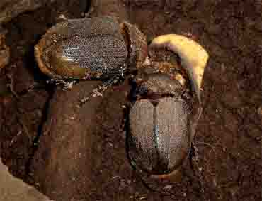 Käfer, meist Männchen, da die Weibchen kleiner und leichter sind.